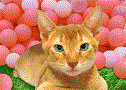 CAT SMILING WITH PINK BALLS click on image to see 3d lenticular effect